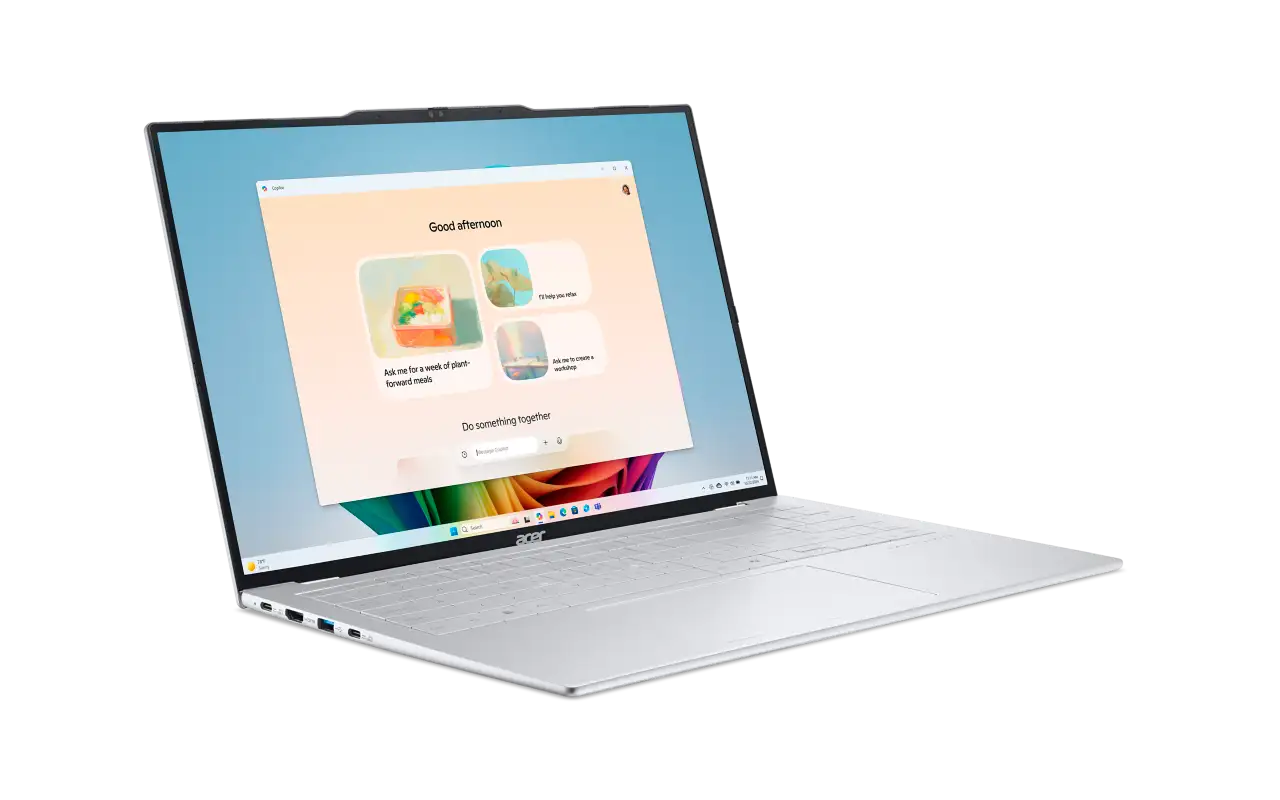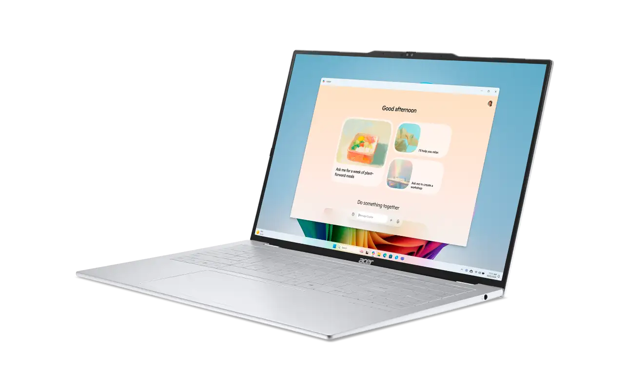 Acer Swift Air 16 Din värld, nu utan begränsningar. AMD RyzenTM 5 330 Octa Core. AMD RadeonTM 820M Integrerad grafik. 16" WUXGA IPS (1920 x 1200) skärm med 60Hz uppdateringsfrekvens och 16:10 bildförhållande. 512 GB PCIe NVMe SSD och 16 GB LDDR5 5200 MHz RAM-minne Wi-Fi 6, PurifiedVoice™ 2.0. Lätt design, väger endast 990 g. Design Konstruerad för det moderna livet. Acer Swift Air 16:s imponerande chassi i magnesium-aluminiumlegering ger en fjäderlätt känsla utan att kompromissa med styrkan. Logga in direkt och säkert med Windows Hello via FHD IR-webbkameran, och skjut sedan för det fysiska integritetsskyddet för fullständig sinnesro. Copilot+ PC Copilot+ PC är mer än smart programvara – de är intelligenta partners som anpassar sig till ditt arbetsflöde, förutser dina vanor och levererar förslag. Genom att effektivisera uppgifter och minska friktion hjälper de dig att hålla fokus och arbeta smartare, så att du kan åstadkomma mer med mindre ansträngning. Prestanda Acer Swift Air 16 med AMD Ryzen™ AI 5 330-processor arbetar smartare, så att du också kan göra det. Den integrerade NPU:n fungerar som din personliga AI-motor och hanterar komplexa uppgifter effektivt, tillsammans med 512 GB lagring och 16 GB RAM-minne. Detta innebär att du får en mer responsiv laptop, längre batteritid och tillgång till en ny värld av AI-drivna funktioner, från intelligent videokonferens till kreativa verktyg på stående fot. Skärm 16-tumsskärmen har FHD WUXGA IPS-teknik som ger ultrajämn bildkvalitet med 60Hz uppdateringsfrekvens och 100% DCI-P3-färgrymd. Det högre bildförhållandet 16:10 förbättrar varje detalj – från djupa svarta toner till livfulla nyanser – för en verkligt uppslukande, bioklassad bildupplevelse. Smart användbarhet Acer Swift Air 16 är mer än bara intelligent – den är optimerad. Vi har byggt in våra egna lösningar, specifikt anpassade för att fungera i perfekt harmoni med hårdvaran. Upplev enkelt AI som inte bara körs på din laptop; den är designad för den. Anslutningar Få den hastighet och mångsidighet du behöver för att förbli produktiv. Wi-Fi 6E levererar en stabil trådlös anslutning, medan två fullständiga USB-C-portar och en HDMI 1.4-port ger flexibla höghastighetsalternativ för laddning, dataöverföring och anslutning till externa skärmar. Tillsammans med den senaste Bluetooth 5.3 har du alla verktyg för att skapa din perfekta setup.