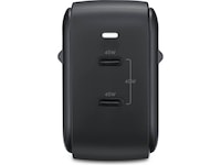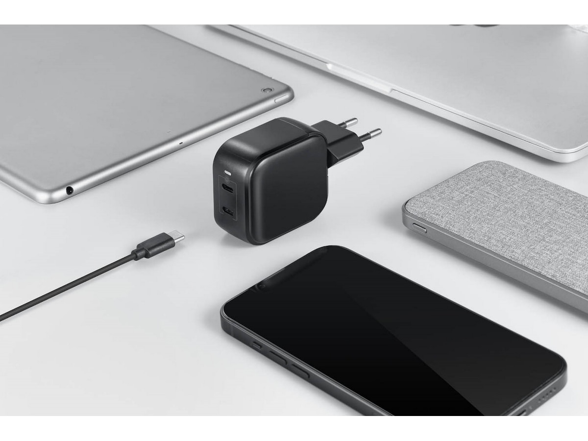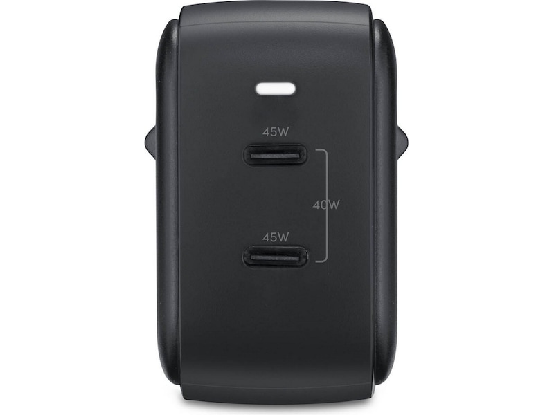 Andersson 45W GaN väggladdare Andersson 45W GaN-laddare med två USB-C-portar är en effektiv och kraftfull väggladdare med den senaste GaN-teknologin för att ge dig en högpresterande laddning. Laddaren stöder dynamisk Power Delivery med PPS-teknik som ger upp till 45W-snabbladdning. Väggladdaren är CE-märkt och har en maximal output på 45W. Vad är en GaN-laddare? Den stora skillnaden mellan en GaN-laddare och ”vanliga” väggladdare är att den till viss del är tillverkad i ett material som heter galliumnitrid. Galliumnitrid (GaN) är ett högpresterande alternativ till det traditionella kisel som används i vanliga fall i laddare. GaN-transistorer producerar mindre värme, vilket gör att komponenterna kan ligga närmare varandra, vilket innebär att du får en mycket mindre laddare men all kraft från en stor. Snabb och skonsam laddning med Power Delivery 3.0 Väggladdaren är utrustad med stöd för Power Delivery 3.0 (USB-PD) vilket är en ny sorts laddningsteknik som kan erbjuda riktig snabb och kraftfull laddning till kompatibla enheter. En Power Delivery-laddare kan ladda med en styrka mellan 0,5 W och 100 W beroende på hur mycket effekt som finns i USB-laddaren. Till skillnad från andra snabbladdningstekniker känner en laddare med USB-PD automatiskt av hur mycket strömkraft som behövs för den enhet som är ansluten, vilket gör att batteriet inte riskerar att skadas. Använd USB-laddaren tillsammans med kompatibel laddkabel och njut av snabbladdning av din mobiltelefon, surfplatta och andra USB-C-drivna enheter. USB-C-uttaget går givetvis bra att använda även för enheter som inte har stöd för Power Delivery. PPS-teknik (Programmable Power Supply) Laddaren stöder dynamisk snabbladdning med PPS-teknik som är ett tillägg till USB-PD 3.0 som gör att du kan ladda din smartphone otroligt snabbt. Denna väggladdare har stöd för upp till 45W med PPS. Fungerar som snabbladdare för iPhone iPhone 8 och senare har stöd för snabbladdning och kan med hjälp av Power Delivery-tekniken (USB-PD) dra nytta av en riktigt snabb laddning. Komplettera med en Lightning till USB-C-kabel, eller USB-C till USB-C för iPhone 15 och senare, för att uppleva en snabbare och mer effektiv laddning av din iPhone. CE-märkt laddare USB-laddaren är liksom alla våra produkter CE-märkt vilket betyder att tillverkaren garanterar att produkten uppfyller EU: s säkerhetskrav för trygg och säker laddning. Visa mer Visa mindre