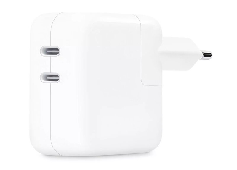 Kompakt Apple 35W usb-c-strömadapter med två portar Med den kompakta 35W usb-c-strömadaptern med två portar kan du ladda två enheter samtidigt, oavsett om du är hemma, på kontoret eller på språng. Adaptern har ett kompakt format och infällbara stift som gör den enkel att bära med sig. Apple rekommenderar att använda den med MacBookAir. Du kan även använda den med iPhone, iPad, AppleWatch och AirPods.Laddningskabel säljs separat. Teknisk info Usb-C Kompatibilitet iPhone-modeller iPhone 15 Pro iPhone 15 Pro Max iPhone 15 iPhone 15 Plus iPhone 14 Pro iPhone 14 Pro Max iPhone 14 iPhone 14 Plus iPhone 13 Pro iPhone 13 Pro Max iPhone 13 mini iPhone 13 iPhone SE (tredje generationen) iPhone 12 Pro iPhone 12 Pro Max iPhone 12 mini iPhone 12 iPhone 11 Pro iPhone 11 Pro Max iPhone 11 iPhone SE (andra generationen) iPhone XS iPhone XS Max iPhone XR iPhone X iPhone 8 iPhone 8 Plus iPad-modeller iPad Pro 12,9 tum (sjätte generationen) iPad Pro 12,9 tum (femte generationen) iPad Pro 12,9 tum (fjärde generationen) iPad Pro 12,9 tum (tredje generationen) iPad Pro 12,9 tum (andra generationen) iPad Pro 12,9 tum (första generationen) iPad Pro 11 tum (fjärde generationen) iPad Pro 11 tum (tredje generationen) iPad Pro 11 tum (andra generationen) iPad Pro 11 tum (första generationen) iPad Pro 10,5 tum iPad Air (femte generationen) iPad Air (fjärde generationen) iPad Air (tredje generationen) iPad (tionde generationen) iPad (nionde generationen) iPad (åttonde generationen) iPad (sjunde generationen) iPad mini (sjätte generationen) iPad mini (femte generationen) Mac-modeller MacBook Air (13 tum, M2, 2022) MacBook Air (M1, 2020) MacBook Air (Retina, 13 tum, 2020) MacBook Air (Retina, 13 tum, 2018–2019) MacBook (Retina, 12 tum, början av 2015–2017) Apple Watch-modeller Apple Watch Ultra 2 Apple Watch Series 9 Apple Watch SE Apple Watch Ultra Apple Watch Series 8 Apple Watch Series 7 Apple Watch Series 6 Apple Watch Series 5 Apple Watch Series 4 Apple Watch Series 3 Apple Watch Series 2 Apple Watch Series 1 Apple Watch (första generationen) AirPods-modeller AirPods Pro (andra generationen) med MagSafe-laddningsetui (usb-c) AirPods Pro (andra generationen) med MagSafe-laddningsetui (Lightning) AirPods Pro (första generationen) med MagSafe-laddningsetui (Lightning) AirPods (tredje generationen) med MagSafe-laddningsetui AirPods (tredje generationen) med Lightning-laddningsetui AirPods med trådlöst laddningsetui (andra generationen) AirPods (andra generationen) AirPods Max AirPods (första generationen) Trådlöst laddningsetui till AirPods
