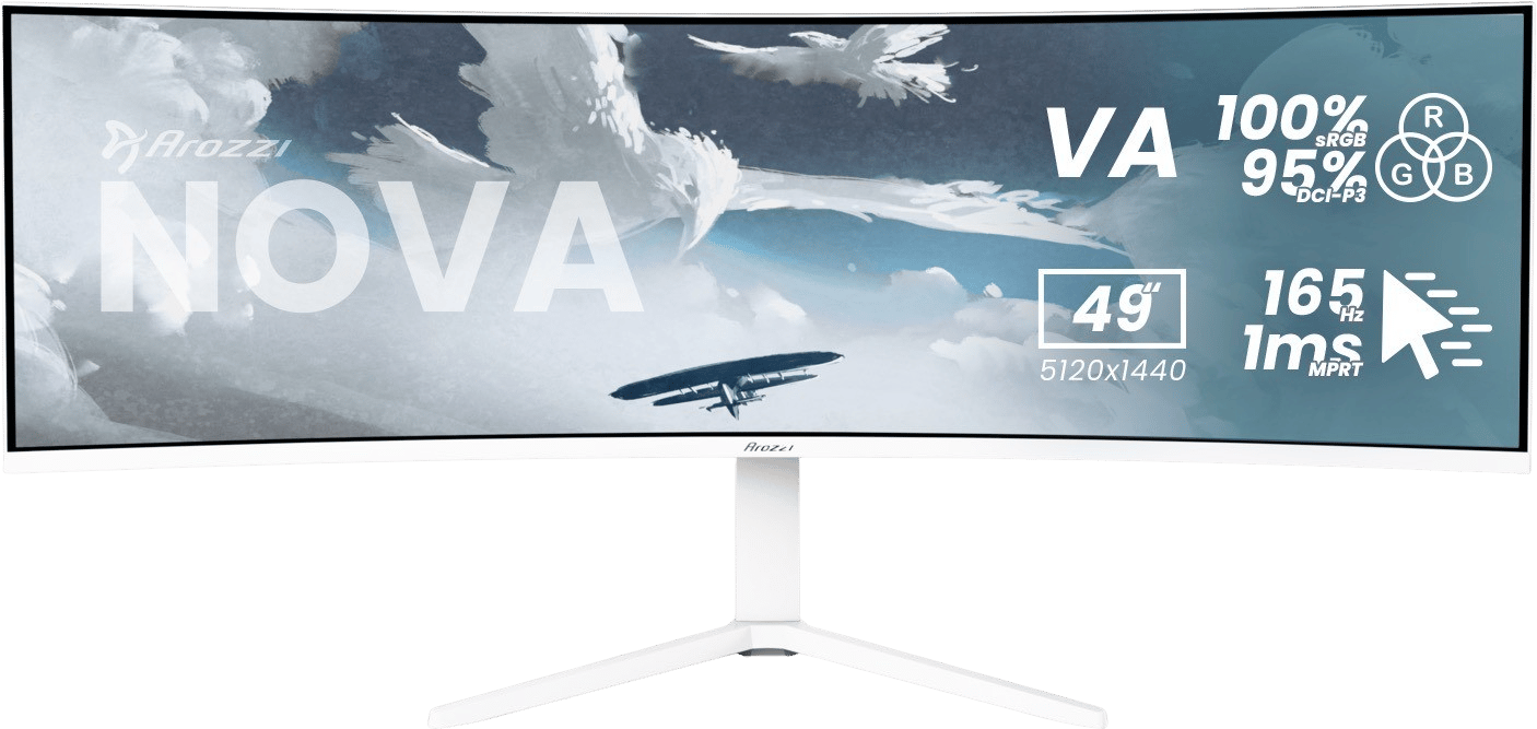 Ultrawide 32:9 â en ny nivĂ„ av inlevelse Nova 49â Ă€r dubbelt sĂ„ bred som en standard 27-tumsskĂ€rm och erbjuder en sömlös, omslutande upplevelse. Det ultrabreda 32:9-formatet med 5120Ă1440-upplösning motsvarar tvĂ„ QHD-paneler sida vid sida, vilket ger maximal arbetsyta och ett fĂ€lt av syn som fyller hela periferin. Den 1500R vĂ€lvda panelen omsluter anvĂ€ndaren och ökar inlevelsen i bĂ„de spel och arbete. VA-panel med djup kontrast och fĂ€rgprecision Med en avancerad VA-panel fĂ„r du ett kontrastförhĂ„llande pĂ„ 3000:1 och upp till 350 cd/mÂČ ljusstyrka. FĂ€rgĂ„tergivningen imponerar med 100 % sRGB och 95 % DCI-P3 â vilket gör Nova 49â perfekt för bĂ„de grafiskt skapande och spel med realistiska fĂ€rger. VA-tekniken ger djup svĂ€rta och bĂ€ttre ljusbalans, vilket skapar en biolik bildkvalitet som höjer varje scen. 165 Hz uppdateringsfrekvens och 1 ms responstid Oavsett om du spelar pĂ„ elitnivĂ„ eller arbetar med snabb rörelsevideo ger 165 Hz och 1 ms MPRT (4 ms GtG) ett flyt utan kompromisser. Overdrive-lĂ€get optimerar rörelseskarpheten och minimerar ghosting. Adaptive Sync (48â165 Hz) synkroniserar bildflödet mellan GPU och panel, vilket eliminerar screen tearing och input lag. HDR, PBP & PIP â kraftfullt och flexibelt Nova 49â stöder HDR för förbĂ€ttrad kontrast och djupare fĂ€rger, vilket ger en mer naturtrogen bild. Med PBP (Picture-by-Picture) och PIP (Picture-in-Picture) kan du visa flera kĂ€llor samtidigt â exempelvis tvĂ„ datorer eller en kombination av arbete och streaming. Perfekt för multitasking, redigering och kreativa arbetsflöden. Professionella anslutningar och design SkĂ€rmen Ă€r utrustad med HDMI 2.1, DisplayPort 1.4, USB-C (65 W PD), tvĂ„ USB-A-portar, en USB-B och en ljudutgĂ„ng â redo för bĂ„de PC, konsol och laptop. Med höjdjusterbart, svĂ€ngbart och lutningsbart stativ kan du enkelt justera visningsvinkeln för optimal ergonomi. VESA-kompatibilitet (75Ă75 mm / 100Ă100 mm via adapter) ger möjlighet till vĂ€ggmontering. Inbyggt ljud och komfort för lĂ„nga sessioner De integrerade 2Ă3 W-högtalarna levererar klart och balanserat ljud, medan flimmerfri teknik och lĂ„gt blĂ„ljuslĂ€ge minskar ögontrötthet under lĂ„nga spelsessioner. RGB-belysning pĂ„ baksidan skapar en dynamisk ljuseffekt som kompletterar skĂ€rmens moderna design. Designad för bĂ„de arbete och spel Arozzi Nova 49â Curved VA 165Hz Ă€r skapad för dem som krĂ€ver mer â mer yta, mer prestanda och mer inlevelse. Oavsett om du kör racingsimulator, redigerar video eller arbetar i flera fönster samtidigt, ger Nova 49â dig en produktiv och uppslukande miljö. Levereras med DP- och USB-C-kabel, VESA-adapter, strömadapter och tre Ă„rs garanti. En enda skĂ€rm â för hela din vĂ€rld. HDR HDR ökar skillnaden mellan ljusa och mörka delar av bilden, vilket ger en klarare sol och djupare skuggor â för en upplevelse som efterliknar vad dina ögon ser i verkligheten. Upplösning Erbjuder DQHD-upplösning pĂ„ 5120x1440 â dubbelt sĂ„ hög som en vanlig 1440p-skĂ€rm â för en perfekt balans mellan kristallklar bild och fantastisk spelprestanda i ultrabrett format. Adaptive Sync Adaptive Sync matchar skĂ€rmens bildfrekvens med ditt grafikkort och förhindrar screen tearing vid snabba rörelser. Flimmerfri Alla Arozzi Nova-skĂ€rmar Ă€r utrustade med flimmerfri teknik som minskar ögontrötthet jĂ€mfört med traditionella skĂ€rmar som kan flimra upp till 200 gĂ„nger per sekund â nĂ„got du kĂ€nner Ă€ven om du inte ser det direkt. Anslutningar Arozzi Nova 49" har flera ingĂ„ngar för alla dina enheter, samt inbyggd USB-hubb och KVM-switch. HĂ„ll allt anslutet nĂ€r du byter enhet â Ă€ven mus och tangentbord!