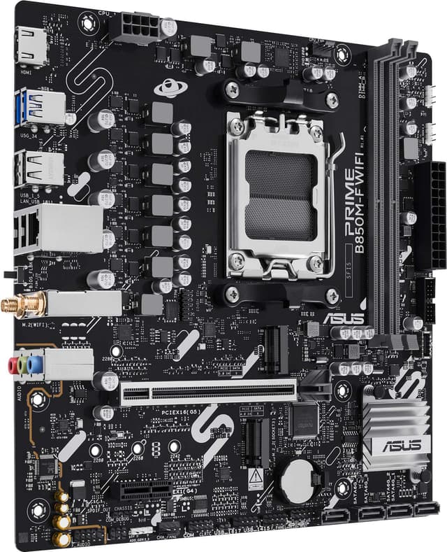 ASUS PRIME B850M-F WIFI-moderkortet Àr utformat för anvÀndare som behöver en pÄlitlig plattform för spel och produktivitet. Det har AMD B850-chipset och AM5-sockel, med stöd för Ryzen 7000/8000/9000-seriens processorer. Med DDR5-minnesstöd och PCIe 5.0-kapacitet erbjuder detta micro-ATX-moderkort robust prestanda och anslutningsmöjligheter, vilket gör det till ett utmÀrkt val för att bygga kompakta men kraftfulla system. Strömförsörjning Detta moderkort har en 8+2+1-fas VRM-design som ger stabil strömförsörjning. Det stöder tvÄkanaligt DDR5-minne med hastigheter upp till 8400+ MT/s (OC), vilket Àr avgörande för högpresterande datoruppgifter. Expansionsmöjligheter Utrustat med en PCIe 5.0 x16-plats för grafikkort och en PCIe 5.0 M.2-plats för SSD-enheter Àr moderkortet förberett för framtida uppgraderingar. Ytterligare platser inkluderar en PCIe 4.0 x1 och ytterligare en PCIe 4.0 M.2, vilket erbjuder en rad expansionsmöjligheter. Omfattande anslutningsmöjligheter Med Wi-Fi 6 och Bluetooth 5.3 stöder moderkortet avancerade trÄdlösa anslutningar. Det inkluderar Àven Realtek 2.5 Gb Ethernet, USB-C-stöd för frontpanel samt HDMI 2.1/DisplayPort 1.4-utgÄngar, vilket ger omfattande anslutningsmöjligheter. AI-förbÀttrad prestanda ASUS AI Suite erbjuder AI Cache Boost och AI Advisor, som hjÀlper till att optimera systemprestanda och finjustering. Dessa verktyg förenklar processen att uppnÄ effektiv och ÀndamÄlsenlig systemdrift.
