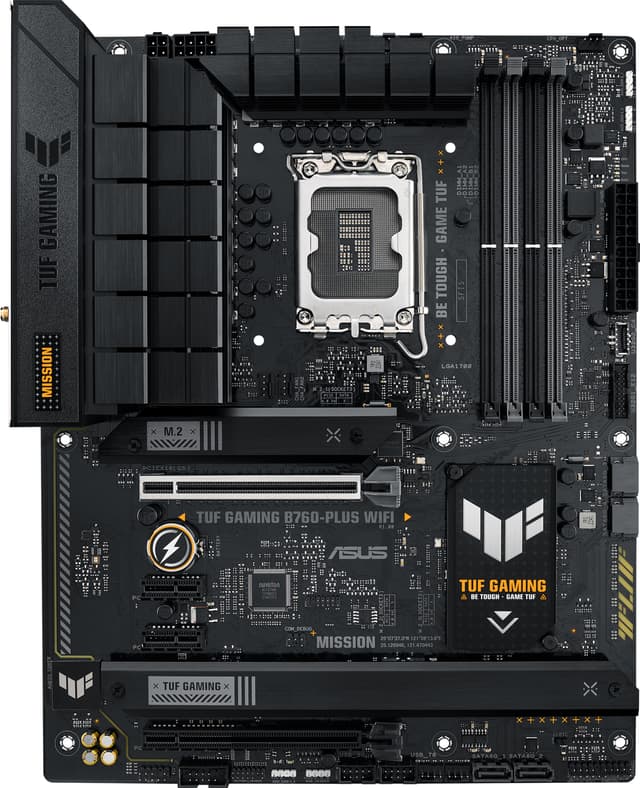 The ASUS TUF GAMING B760-PLUS WIFI motherboard features an LGA 1700 socket and a plethora of robust features for top-tier performance, making it an ideal choice for any professional or casual environment.