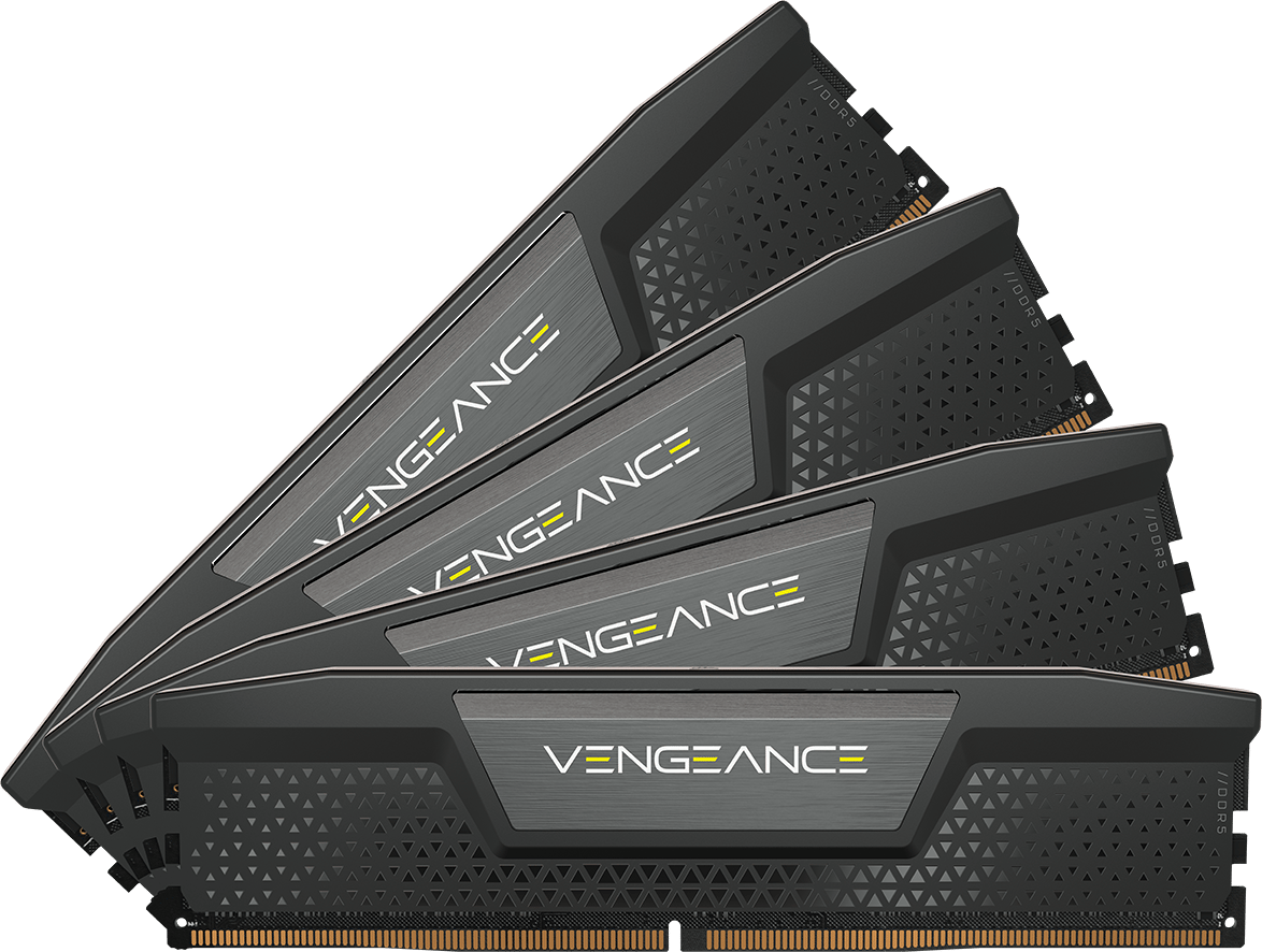 Vengeance DDR5 DDR5 Memory Welcome to cutting edge performance Push the limits of your system like never-before with DDR5 memory, unlocking even faster frequencies, greater capacities, and better performance. Over 5000MHz speed Do it all, and do it faster In the many-core era, the unprecedented processing speed of DDR5 ensures your high-end CPU gets data quickly with ease. Whether you are gaming, creating content, opening 100 tabs, or multi-tasking, your PC can power through complex tasks faster than ever before. Easier than ever Onboard voltage regulation You have the power and the control. Built-involtage regulation with iCUE software control makes for easier, finely-tuned output that provides more stable overclocking than ever. Overclock it your way Custom Intel XMP 3.0 profiles Ditch the tedious process of manually adjusting your performance settings each time when you save your own XMP profiles through iCUE. Easily customize and tailor your setting profiles by app or task for greater efficiency. *XMP profile manager will be available by Winter 2021 Continuing a legacy of performance Compact Form-Factor Low clearance ensures wide compatibility with nearly any DDR5 build. Hand-Sorted, Tightly-Screened Memory Chips Ensures consistent high-frequency performance with aggressive timing options. High-Performance PCB Guarantees signal quality and stability for superior overclocking ability. Solid Aluminum Heatspreader Conducts heat away from your memory quickly, with refined VENGEANCE styling to fit the look of modern systems.