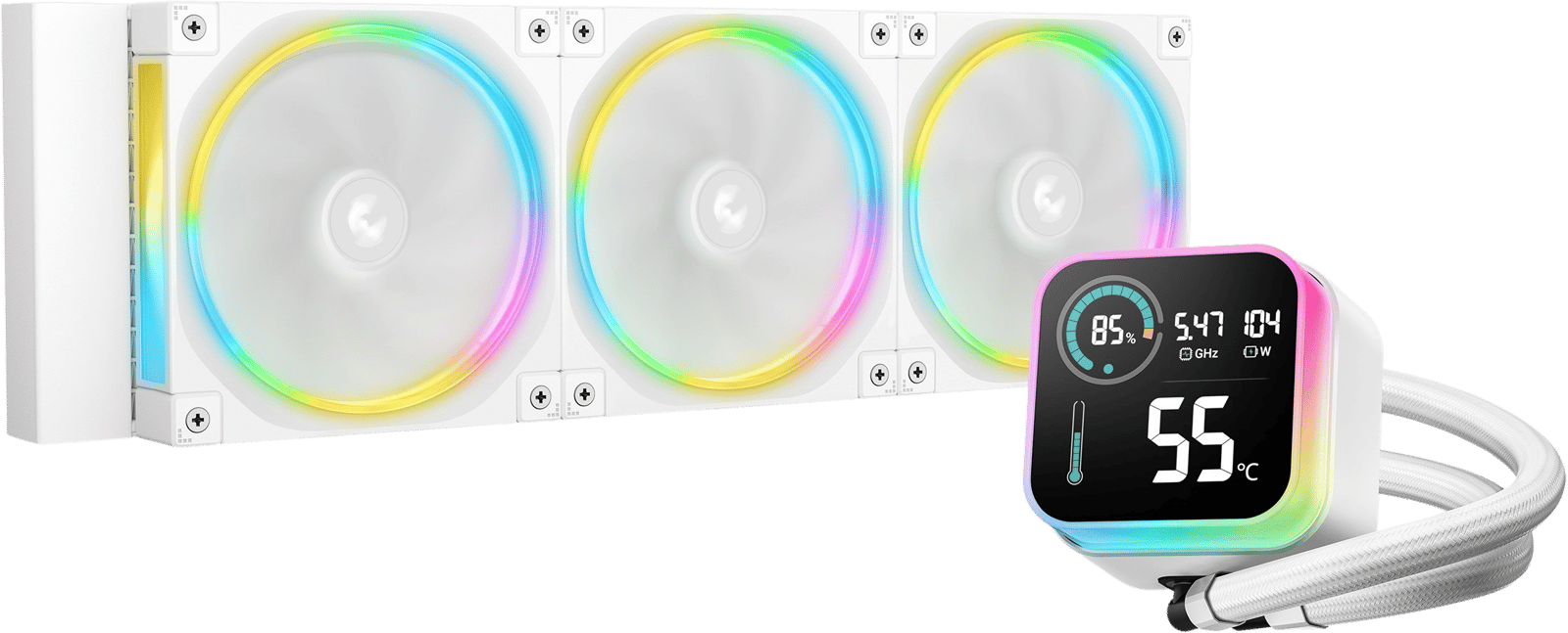 KylningstypVattenkylningFärgVitFläktar / LuftkylningFläkt (storlek)120 mmMedföljande fläktar3 stRotationshastighet (fläkt)2 150 rpm, 500~2150 RPM ±10%Ljudnivå32 dBFlöde 55 cfmStatiskt tryck2,82 mmH2OAnslutning4-pin PWM + 3-pin 5V A-RGBRadiatorStorlek (mm)360Tjocklek27 mmSlanglängd410 mmPumphastighet3 400 rpm, 2500~3400 RPM±10%Strömförbrukning3,48 WAnslutning4-pin PWMKompatibilitetProcessorsocket Intel 1155, Intel 1156, Intel 1150, Intel 1151, AMD AM4, Intel 1200, Intel 1700, AMD AM5, Intel 1851Mått och viktBredd120 mmDjup/Längd402 mmTjocklek vattenkylning (fläkt + radiator)52 mmHöjd över moderkort 64 mmVikt1 900 gÖvrigtInbyggd skärmJa, LED skärm som visar temperaturA-RGBJa, A-RGBTillverkarens garanti5 årArtikelnummerPaketbredd44,4 cmPakethöjd19,8 cmPaketlängd17,1 cmPaketvikt2,426 kgVårt ArtNr5325623Tillverkarens ArtNrR-LQ360-WHASMC-G-1Upplagd2026-01-27 14:17ProduktbladSkriv ut