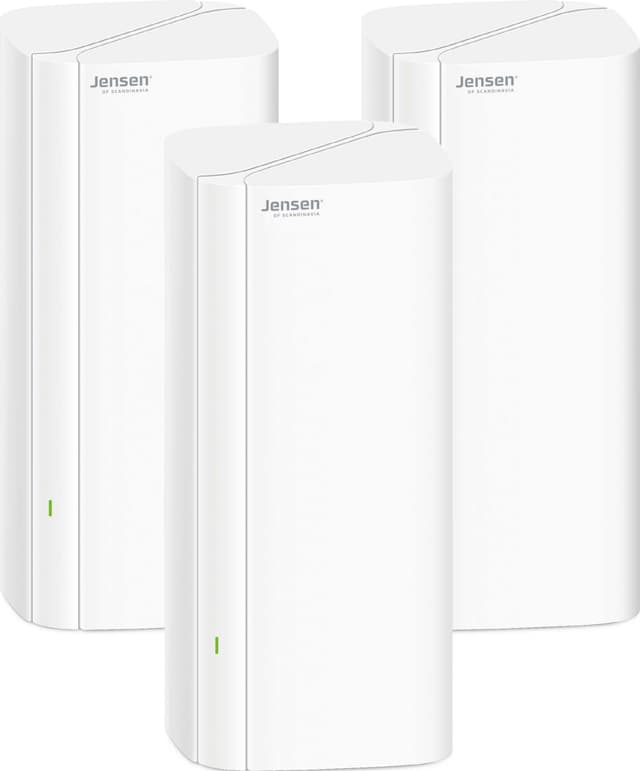 Hela din lägenhet eller hus kan dra nytta av snabb och pålitlig WiFi-nätverksåtkomst tack vare Jensen Omni WF6/AX3000 mesh-kit. Nätsatsen innehåller tre noder med en kombinerad täckning på upp till 500 kvadratmeter, vilket gör det till ett utmärkt val för medelstora eller stora hus eller flervåningslägenheter. Med mesh-nätverk kan du roama fritt genom hela det täckta området och behöver inte växla mellan nätverks-SSID. Nätenheterna kommer i elegant kubisk design som är ett välkommet tillskott till ett modernt hushåll. Förläng täckningen Kombinera ytterligare noder (tillgängliga separat) för att skapa ett enormt kraftfullt WiFi-nätverk som använder ett enda SSID-namn och lösenord för att logga in. Genom sömlös anslutning kan du ströva genom hela det täckta området utan att uppleva fall eller fördröjning. Mobil app Jensen erbjuder en gratis mobilapp för Android-telefoner och iPhone, så att du har full kontroll över nätverket i dina händer. Flera funktioner - Dubbelbands Wi-Fi 6 (802.11ax) 2,4 GHz och 5,0 GHz sändning - Upp till 3000 Mbps nodöverföringshastighet - MU-MIMO-teknik för flera samtidiga anslutningar - Tre 1000 Mbs LAN-portar per nod - WPA3-säkerhetsprotokoll - Föräldrakontroll, gästnätverk Förpackningen innehåller - 3 Omni mesh-enheter - Ethernet-kabel - 3 strömadaptrar