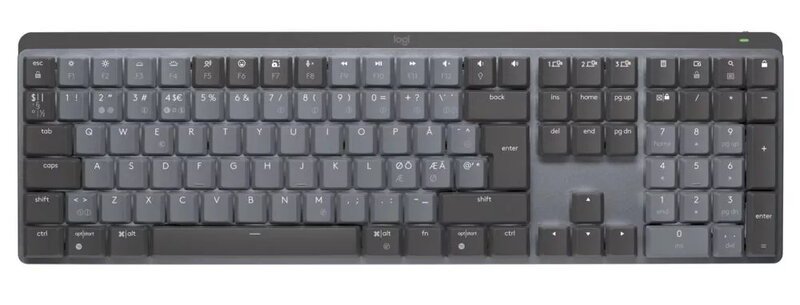 Logitech MX Mechanical är ett trådlöst tangentbord med mekaniska tangenter med låg profil. Upplev oemotståndlig taktil feedback vid varje tangentkoppling, smart belysning och Easy-Switch-teknik som låter dig ansluta upp till tre enheter samtidigt. Utformat för hög precision och komfort vid både kreativt arbete och kodning.