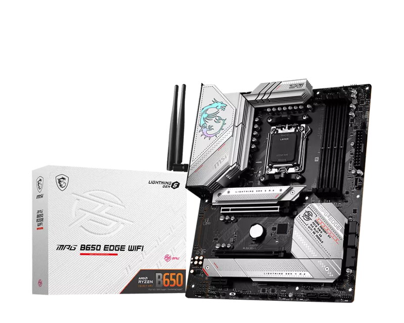 MSI MPG B650 EDGE WIFI är ett moderkort som stöder AMD Ryzen™ 7000-seriens desktop processorer, du får även stöd för DDR5-minne (upp till 6600+ OC MHz). Dessutom så har moderkortet utrustats med funktioner som DRPS 14+2+1 VRM-kraft, Core Boost, Memory Boost samt en smart kyldesign vilket håller det svalt under långa spelmaraton. Kompatibelt med AMD Ryzen 7000-seriens processorer Moderkortet är kompatibelt med AMD:s Ryzen 7000-seriens processorer. Senaste DDR5-standarden Med den senaste DDR-standarden erbjuder detta moderkort en mycket förbättrad prestanda. Njut av den extra boosten i spelprestanda eller när du arbetar med stora videofilmer och foton. WiFi och Bluetooth Moderkortet har en WiFi-modul med Wi-Fi 6E som stöder 802.11 a/b/g/n/ac/ax med Dual-Band och även stöd för enheter med Bluetooth 5.2. En ultimat trådlös upplevelse för både nätverk och externa enheter via Bluetooth. Egenskaper • Kompabilitet: AMD Ryzen 7000-serien • Socket: AM5 • Chipset: AMD B650 • Grafikgränssnitt: 1 x DisplayPort 1.4, 1 x HDMI 2.1 • Minnesstöd: 4 x DIMM, Max. 128GB, DDR5 6600+(OC)/6400(OC)/6200(OC)/6000(OC)/5800(OC)/5600(OC)/5400(OC)/5200(OC)/5000(OC)/4800(JEDEC) MHz • Lagring: Total supports 3 x M.2 slots and 6 x SATA 6Gb/s ports USB-portar: 2x USB 2.0 (Rear) 4x USB 2.0 (Front) 4x USB 3.2 Gen1 Type A (Rear) 2x USB 3.2 Gen1 Type A (Front) 3x USB 3.2 Gen2 Type A (Rear) 1x USB 3.2 Gen2 Type C (Front) 1x USB 3.2 Gen2x2 Type C (Rear). • WiFi: AMD Wi-Fi 6E Supports 802.11 a/ b/ g/ n/ ac/ ax • Bluetooth: Bluetooth 5.2 • LAN: Realtek® RTL8125BG 2.5Gbps LAN • Ljud: Realtek® ALC4080 Codec 7.1-Channel USB High Performance Audio Supports up to 32-Bit/384 kHz playback on front panel