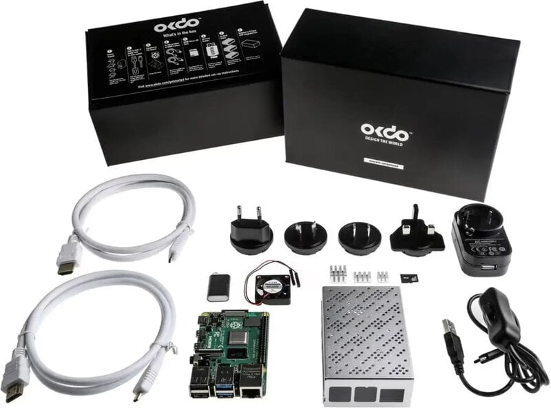Raspberry Pi4 Startpaket Detta exklusiva Raspberry Pi4 startpaket från OKdo innehåller allt du behöver för att komma igång i Raspberry Pi-världen. Varje paket innehåller Raspberry Pi4 Model kort tillsammans med en strömförsörjning, 2 X mikro HDMI-kablar för dubbel bildskärm, SD-kortläsare och ett 16 GB micro SD-kort. Såväl som kylflänsar och ett aluminiumskåp med integrerad fläkt för bättre värmehantering. Med alla de mest aktuella komponenterna på marknaden inkluderade i detta Raspberry Pi4-paket, är det perfekt för alla som är intresserade av elektronik på alla erfarenhetsnivåer. Raspberry Pi:er är kompakta datorkort som är ungefär i storlek med ett kreditkort och erbjuder oändliga möjligheter. Pi skapades först som ett användarvänligt alternativ till mer komplicerade datorkort men med samma högpresterande utmatning, vilket gör att kunden kan göra vad de vill med det. Oavsett om du planerar att introducera programmering för barn, eller om du är ingenjör som vill skapa ett komplext styrsystem, är det bara att koppla in en bildskärm, tangentbord, mus och strömförsörjning så är du redo att köra. Raspberry Pi4-kort Strömförsörjning för Raspberry Pi4 (svart) Aluminiumskåp med fläkt och 3 kylflänsar SD-kort för PI4 16 gb. HDMI till micro HDMI-kabel Skruvmejsel SD-kortläsare
