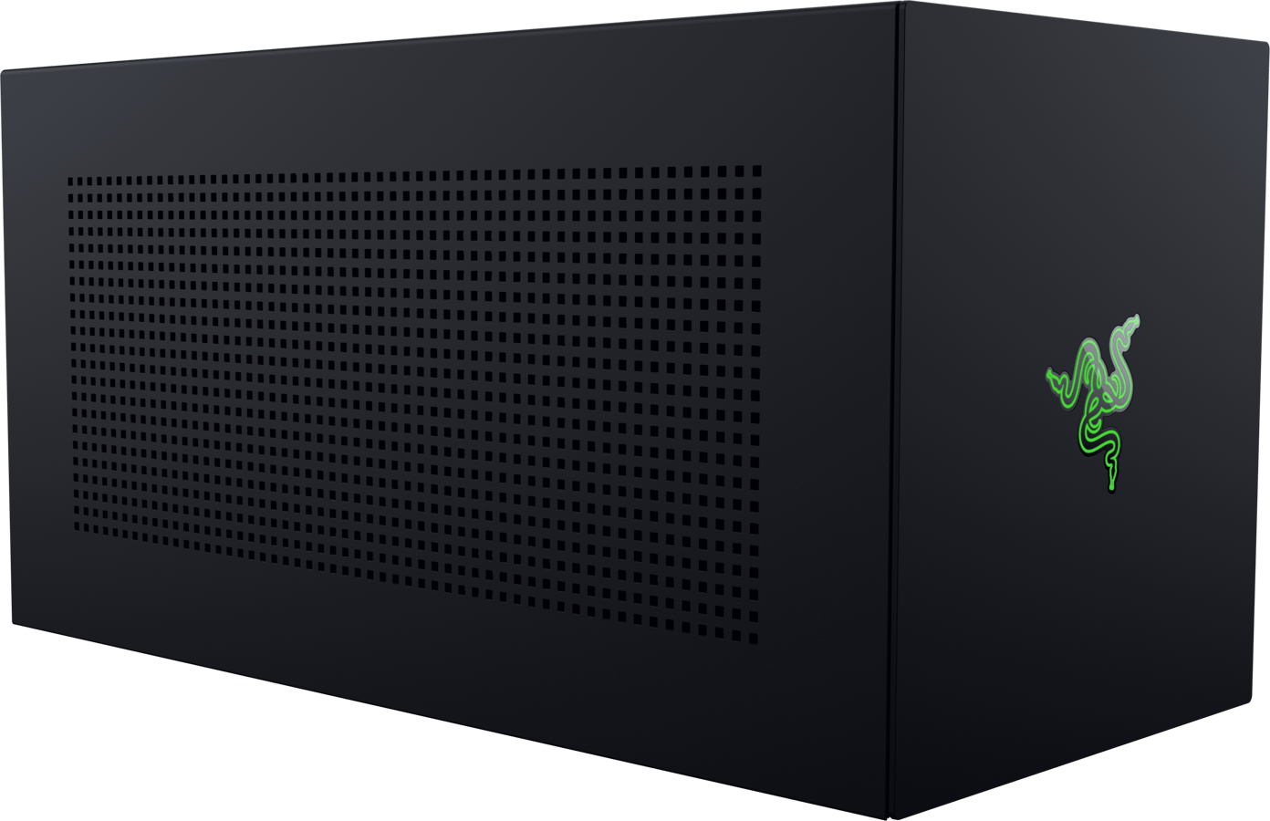 Anslut fullstora grafikkort Razer Core X V2 är utformad för att passa PCIe-grafikkort för stationära datorer upp till 4 platser breda. Ge din bärbara dator en rejäl ökning av kraft genom att ansluta de senaste NVIDIA® GeForce®- och AMD Radeon™-grafikprocessorerna. *Grafikkort och nätaggregat ingår ej.Nästa generations THUNDERBOLT™ 5 Med en ultrasnabb bandbredd på upp till 80 Gbps kan du njuta av smidig prestanda med en Thunderbolt™ 5-anslutning som enkelt hanterar dina mest krävande kreativa appar och AAA-spel.En enda kabel Använd den var som helst genom att helt enkelt ansluta Razer Core X V2 till din enhet via en medföljande Thunderbolt™ 5-kabel. Få en grafisk boost från detta externa GPU-kabinett så fort du behöver det och koppla bara ur när du är klar.Ventilerat metallchassi med aktiv kylning Bibehåll maximal prestanda med en inbyggd 120 mm-fläkt som automatiskt ökar hastigheten vid tung belastning eller anpassa fläktkurvan för att uppnå ditt ideala förhållande mellan ljud och kylning.
