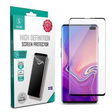 SiGN 3D Curved Skärmskydd för Samsung Galaxy S10 Plus Skärmskydd från SiGN som ger ett oslagbart skydd åt din mobilskärm. Skärmskyddet skyddar effektivt din skärm mot repor och smuts och är utrustat med en oleofobisk och hydrofobisk nanobeläggning som avvisar vatten- fett och fingeravtryck. Med detta skärmskydd bibehåller du kristallklar skärpa från din skärm och en oförändrad touchförmåga. Skärmskyddet är tillverkat i ett unikt material som är kompatibelt med fingeravtryckssensor. Egenskaper : Passar till: Samsung Galaxy S10 Plus Material: Plastfilm Märke: SiGN Heltäckande : Ja Touch-kompatibelt: Ja Ljusgenomsläpp : HD-kvalitet