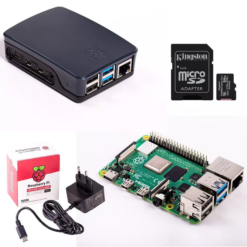 Ett komplett startpaket för Raspberry Pi 4. Innehåll: - 1st Raspberry Pi 4 Model B - 2GB RAM - 1st Kingston 64GB MicroSD-kort - 1st Raspberry Pi 4 Strömförsörjning (5.1V / 3A / USB-C) - 1st Raspberry Pi 4 Case (Svart/Grå) Tekniska specifikationer: - 1.5GHz quad-core 64-bit ARM Cortex-A72 CPU - 2GB LPDDR4 SDRAM - Full-throughput Gigabit Ethernet - Dual-band 802.11ac trådlöst nätverk - Bluetooth 5.0 - Två USB 3.0 och två USB 2.0-portar - Stöd för dubbla skärmar (upp till 4K) - VideoCore VI graphics