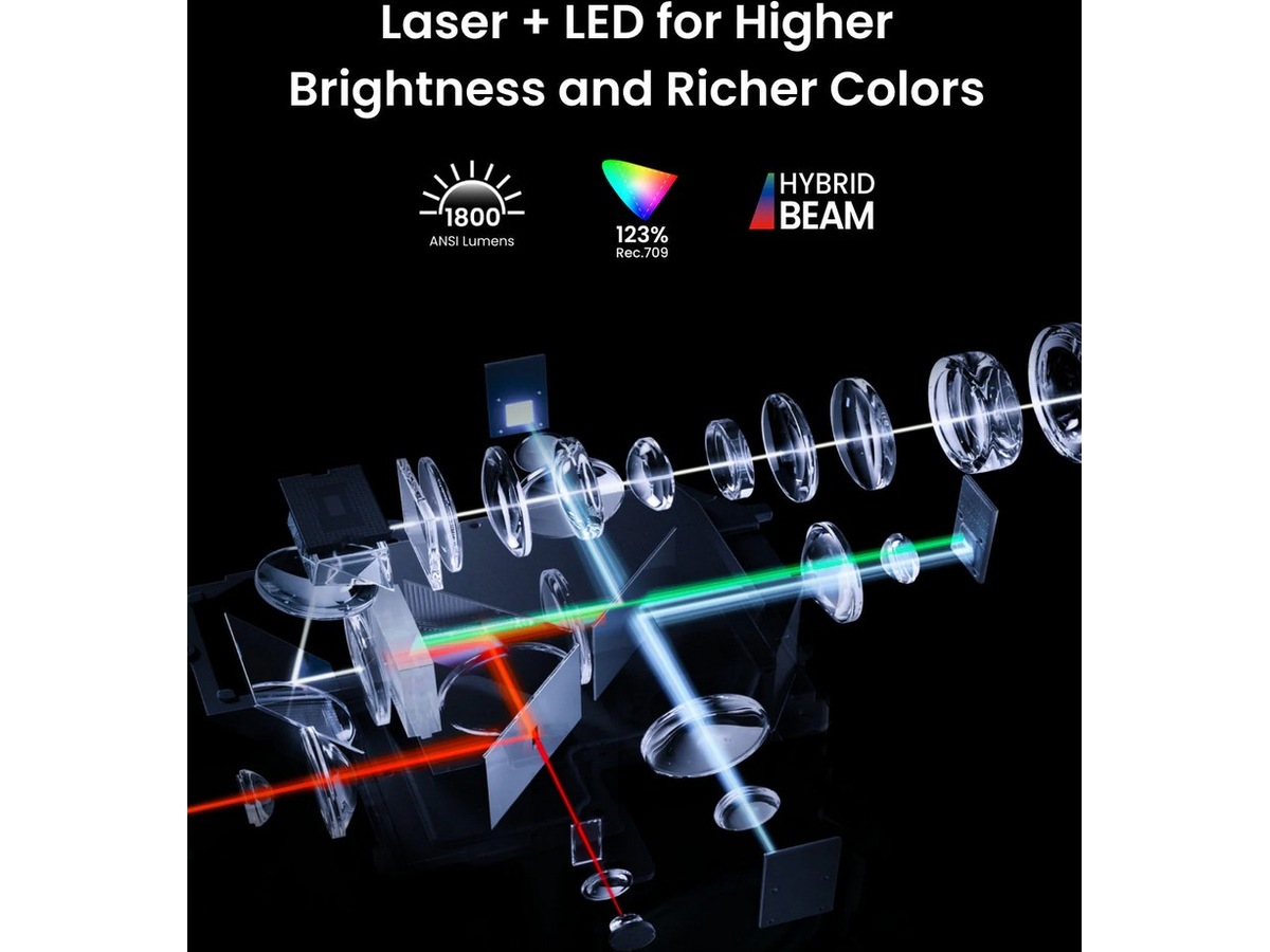 Anker Nebula Cosmos 4K SE Dolby Vision-projektor med Google TV 4K Dolby Vision, expansiv 200" skärm : Upplev förstklassig 4K-upplösning med 40x förbättrad ljusstyrka, 50x överlägsen kontrast och exakt färgåtergivning tack vare Dolby Vision-teknologi. Projekterar upp till 200" för en uppslukande bioupplevelse. Avancerad HybridBeam-teknik : Den egenutvecklade HybridBeam-tekniken kombinerar LED- och laserljuskällor för att leverera exceptionella 1 800 ANSI-lumen och ett färgspektrum på 1,07 miljarder färger för överlägsen visuell klarhet. NebulaMaster™ bildmotor : Ger precisionsteknisk visuell återgivning i varje bildruta, med förbättrade kontrastförhållanden, optimerad gråskaleåtergivning, överlägsen färgnoggrannhet och förfinad rörelsehantering. IEA 4.0 Intelligent Environment Adaptation : Cosmos 4K SE optimerar automatiskt prestandan genom realtidsautofokus, keystone-korrigering, hinderigenkänning, skärmanpassning, väggfärgskompensation och justering av omgivningsljus. Integrerad Google TV med 4K Netflix-stöd : Få personliga innehållsrekommendationer anpassade efter dina preferenser, med inbyggd 4K Netflix-streaming—utan behov av externa streaming-enheter. Visa mer Visa mindre