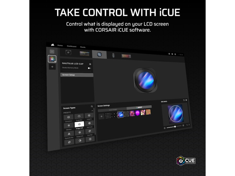 Corsair Nautilus RS LCD CORSAIR NAUTILUS RS LCD Liquid CPU Cooler levererar effektiv, lågbrus kylning samtidigt som den visar din kreativitet med en livfull 2,1" IPS LCD-skärm. Använd iCUE Software för att visa temperaturer, dina favorit-GIFs eller egna bilder. Den något konvexa kylplattan med förapplicerad termisk pasta säkerställer överlägsen värmeöverföring, medan hög statiskt tryck RS120 fläktar håller temperaturen låg för maximal CPU-prestanda. Förenkla din byggnation med sammankedjade anslutningar och exakt kylkontroll via en 4-pin PWM-fläkt header. Med stöd för ett brett utbud av Intel® och AMD® CPU-socklar, inklusive de senaste LGA 1851 och AM5-plattformarna, erbjuder NAUTILUS RS LCD bred systemkompatibilitet. Enkel, fokuserad CPU-kylning – Kraftfull, lågbrus prestanda säkerställer att din CPU når sin fulla potential, medan en anpassningsbar LCD-skärm lägger till en touch av stil till ditt system. Effektiv, lågbrus pump – Håller kylvätskan cirkulerande vid en hög hastighet medan den håller sig viskande tyst vid endast 20 dBA. Konvex kylplatta med förapplicerad termisk pasta – Den något konvexa designen säkerställer maximal kontakt med CPU:ns integrerade värmespridare, medan förapplicerad termisk pasta påskyndar installationen. RS120 fläktar – Fläktar med högt statiskt tryck trycker effektivt luft genom radiatorn, medan CORSAIR AirGuide-teknik och Magnetiska Dome-lager levererar stark kylning med låg ljudnivå. BRILJANT IPS LCD SKÄRM Visa CPU-temperatur, animerade GIF:er, memes eller ditt teams logotyp på en skarp 480 x 480 IPS-skärm med 30 FPS, en ultraljus bakgrundsbelysning på 600cd/m² och över 16,7 miljoner färger. iCUE Software inkluderar full in-app GIPHY-integrering, vilket ger dig tillgång till tusentals av dina favoritmemes och GIF:er. FLOWDRIVE KYLMOTOR Designad internt av CORSAIR:s expertingenjörer, drivs pumpen av en trefasmotor med högre flödeshastighet och ännu lägre ljudnivåer än sina föregångare. Lägg till en precisionsdesignad kylplattesurfaceprofil som maximerar kontakten med din CPU:s IHS, och du har ett recept för konsekvent lägre temperaturer. ENKEL INSTALLATION Du behöver bara ansluta den medföljande kabeln till en tillgänglig USB 2.0 (9-pin) header på ditt moderkort för att driva och kontrollera LCD-skärmen. Det är allt som behövs. MAXIMAL KONTAKT Den något konvexa designen säkerställer optimal kontakt med din CPU:s integrerade värmespridare, med termisk pasta applicerad i ett optimerat mönster för att påskynda installationen. HÖG LUFTFLÖDE OCH STATISKT TRYCK RS Fläktar förser effektivt luft genom radiatorn, medan CORSAIR AirGuide-teknologi och Magnetiska Dome-lager ger stark kylning med låg ljudnivå. DAISY-KOPPLAS ANSLUTNINGAR Minimera kabeltrassel i ditt system genom att kedjekoppla dina RS-fläktar till en enda 4-pins PWM-kontakt på ditt moderkort. TYST OCH EFFEKTIV Den effektiva lågbullerpumpen cirkulerar kylvätska med hög flödeshastighet vid en viskande tyst 20 dBA. PWM-kontroll låter dig ställa in din fläkthastighet upp till 2 100 RPM, med stöd för Zero RPM-läge för tyst drift. Visa mer Visa mindre