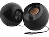 Creative Pebble PC Högtalare Svart Den klotformade Creative Pebble-högtalaren, inspirerad av japanska stenträdgårdar, är en smidig och elegant 2.0-högtalare som passar perfekt i varje hem och på varje kontor. Den har en 45° förhöjd ljudbild för förbättrad ljudprojektion och drivs av en USB-sladd för problemfri musikunderhållning. Ljud rakt in i dina öron Creative Pebble har ett 45° förhöjt specialanpassat fjärrområdesdrivelement som riktar ljudet till dina öron och placerar dig på den bästa punkten för en fantastisk ljudupplevelse. Liten men stark Den lilla Creative Pebble har inbyggda passiva element och en imponerande sammanlagd RMS på 4,4W, och den ger ett balanserat ljud med djup, omslutande och kristallklar detaljrikedom. Anslut dina enheter via 3,5 mm-kontakten och förbered dig på en överraskning. Bekvämlighet inom räckhåll Justera volymen snabbt med Creative Pebbles bekväma frontplacerade kontroll. Inget utrymme på bordet? Inga problem Creative Pebble är bara 11,2 cm bred och kan enkelt placeras intill din dator utan att ta upp värdefull bordsyta. Dessutom drivs Creative Pebble enkelt med en USB-kabel utan att ett vägguttag behövs. Visa mer Visa mindre