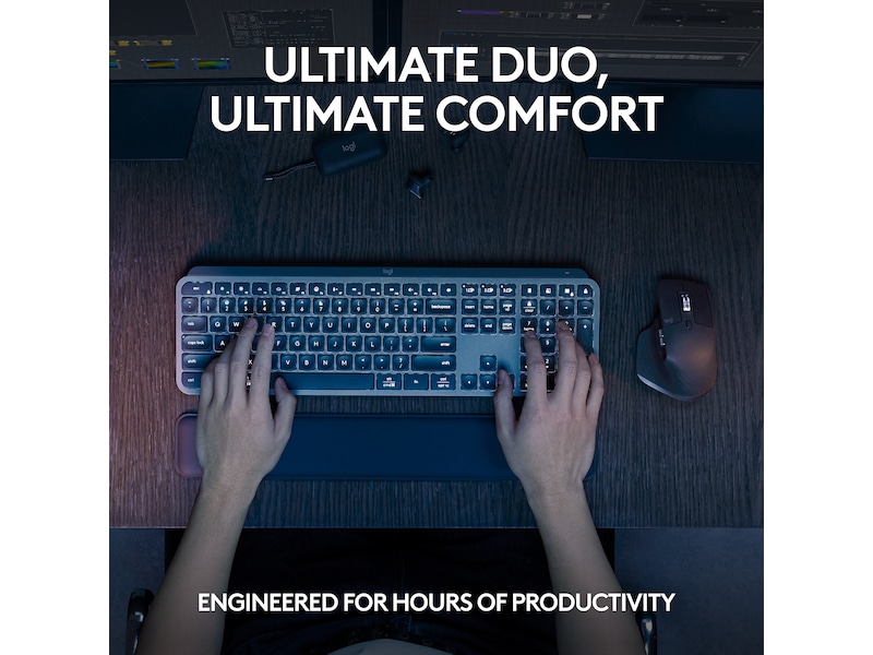 Inkl. MX Master 3S mus och MX Keys S tangentbord med handledsstöd