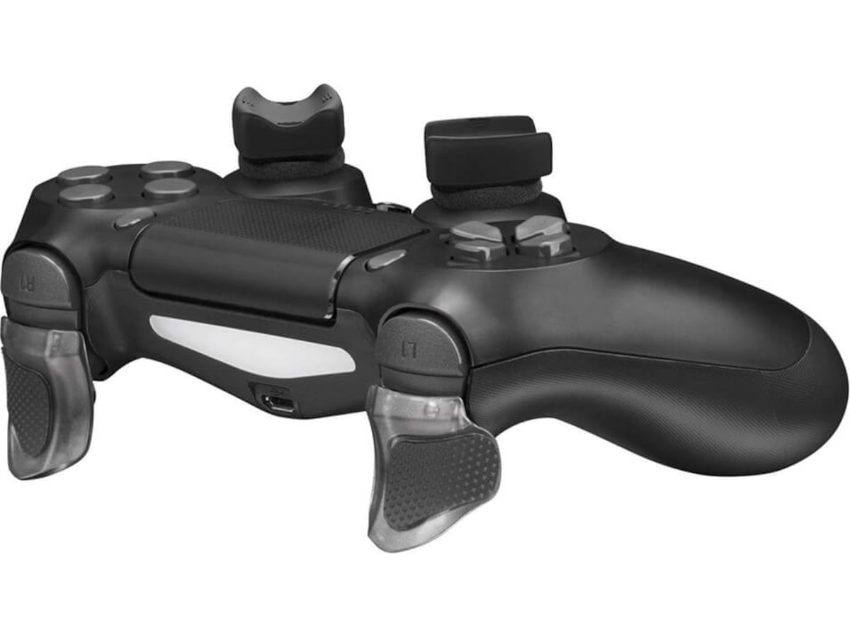 NITHO PS4® FPS PRECISIONSSET Blandad uppsättning förstärkare för PS4® DualShock®4-kontroller som består av: Set med två ergonomiska förlängningsutlösare (vänster och höger) som ger ett bättre grepp till originalkontrollens utlösare och ger valbara Quickfire- eller Full Control-funktioner Set med två antisladdavtryckare i gummi (vänster och höger) Set med två ovala konkava tumgrepp (vänster och höger) för att förbättra spelkontrollen och finns i tre olika storlekar (L, M och S) Set med två ministick-förstärkare för att förbättra noggrannheten medan du pekar på mål Lätt att sätta upp och ta bort, ger hög förbättring av grepp och precision under spelande Visa mer Visa mindre