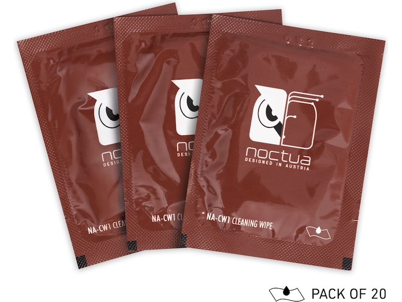Noctua wetwipes 20-pack The NA-SCW1 is a 20-piece set of individually packed NA-CW1 cleaning wipes for removing thermal compounds such as Noctua NT-H2 and NT-H1. Pre-moistened with a custom detergent mixture, these wipes are ideal for cleaning CPUs, GPUs and the contact surface of heatsinks in a quick and efficient manner. Thanks to their large size (15x12cm), one pad is usually enough to clean both the chip and the cooler. Visa mer Visa mindre
