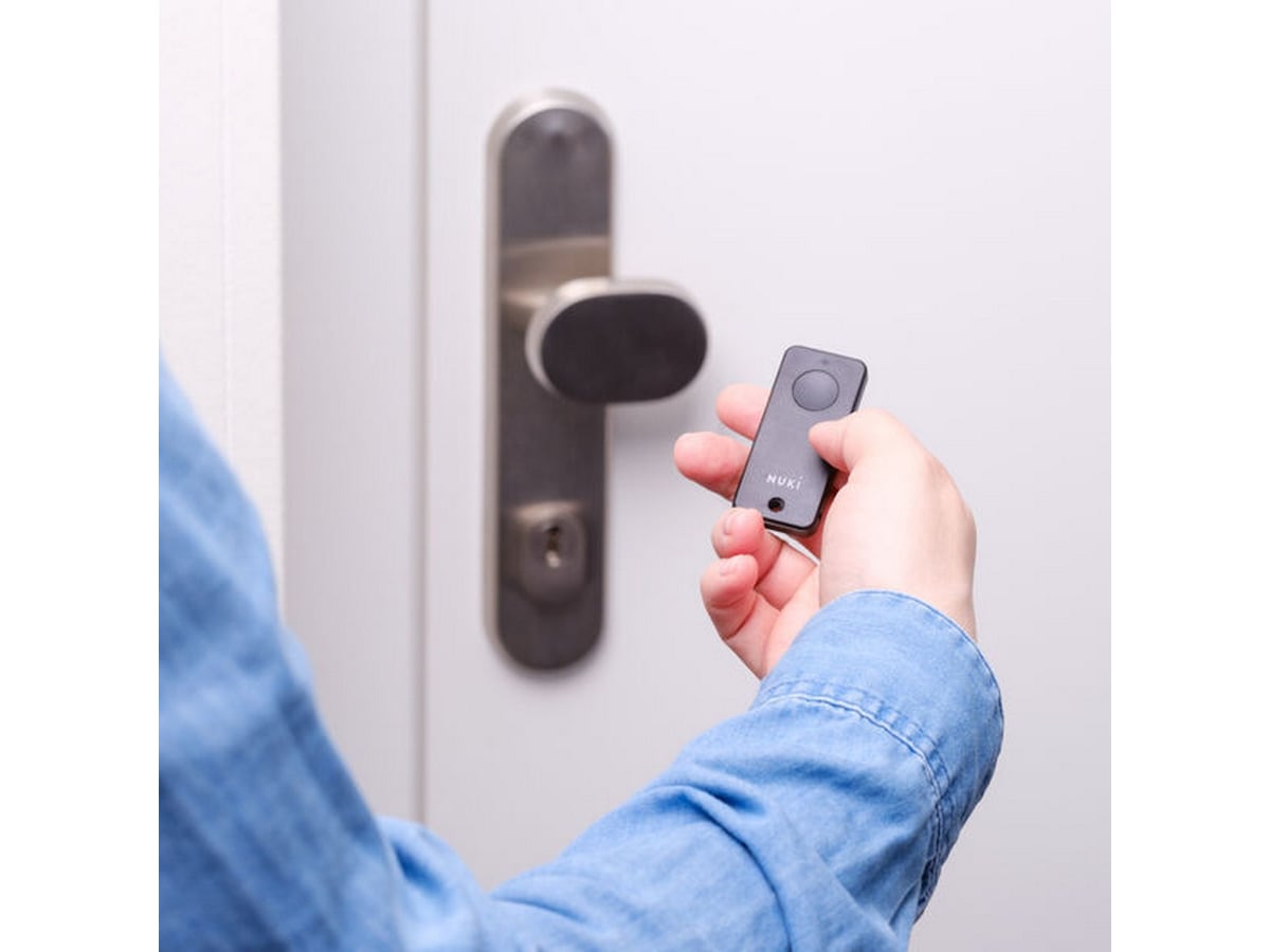 Nuki Fob Öppna din dörr med en knapptryckning - ingen smartphone behövs. Nuki Fob är en bekväm Bluetooth-fjärrkontroll som gör det möjligt att låsa och låsa upp ditt Smart Lock utan att behöva en smartphone. Enkel hantering gör den till den idealiska lösningen för barn och äldre personer. Dessutom är Nuki Fob stöt- och vattentålig, perfekt för sportentusiaster som vill ta en paus från sin smartphone då och då. Du kan hantera åtkomstbehörigheterna för varje Fob individuellt. Så de kan lämnas till tjänsteleverantörer som städpersonal. Du behöver inte oroa dig för förlorade nycklar längre. Om en Fob tappas kan du enkelt inaktivera dess låsbehörighet i din Nuki App. Fob är kompatibel med alla Nuki-åtkomstlösningar. Inkluderat 1x Nuki Fob 1x Instruktioner 1x CR1632 batteri Visa mer Visa mindre