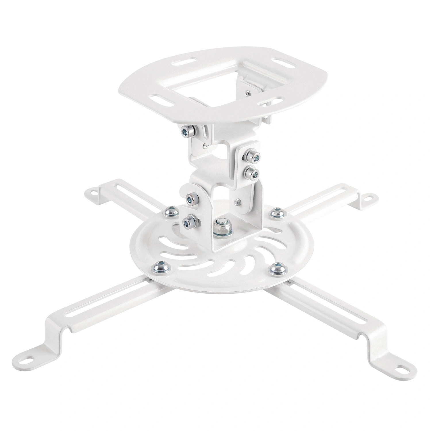 Projektorfäste LogiLink projektorfäste är tillverkad av en aluminiumkonstruktion och håller projektorer på upp till 13,5 kg, med ett intervall från 54-320 mm. Fästet kan luta och svänga upp till -15°/+15° och kan roteras upp till 360°. Den är lämplig för plana tak och levereras med nödvändig installationsmaterial för enkel installation. - Passar projektorer upp till 13,5 kg - Robust och enkel design - Aluminiumkonstruktion - Lämplig för plana innertak - Vrid och sväng upp till -15°/+15°, rotera 360° - För projektorer med en diameter på 54-320 mm i diameter - Armlängd: 150 mm - Monteringsdelar ingår Färg: Vit Produktdokument